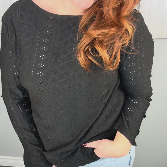 Romantic, feminine, and effortlessly chic — this Black Floral Lace Splicing Eyelet Top blends delicate eyelet texture with striking lace detailing for a look that turns heads from every angle. The deep V-back lace panel adds a soft, sultry touch, while the front keeps things elegant and wearable. Pair it with denim for a casual date look or dress it up for a night out — this top does all the flirting for you.