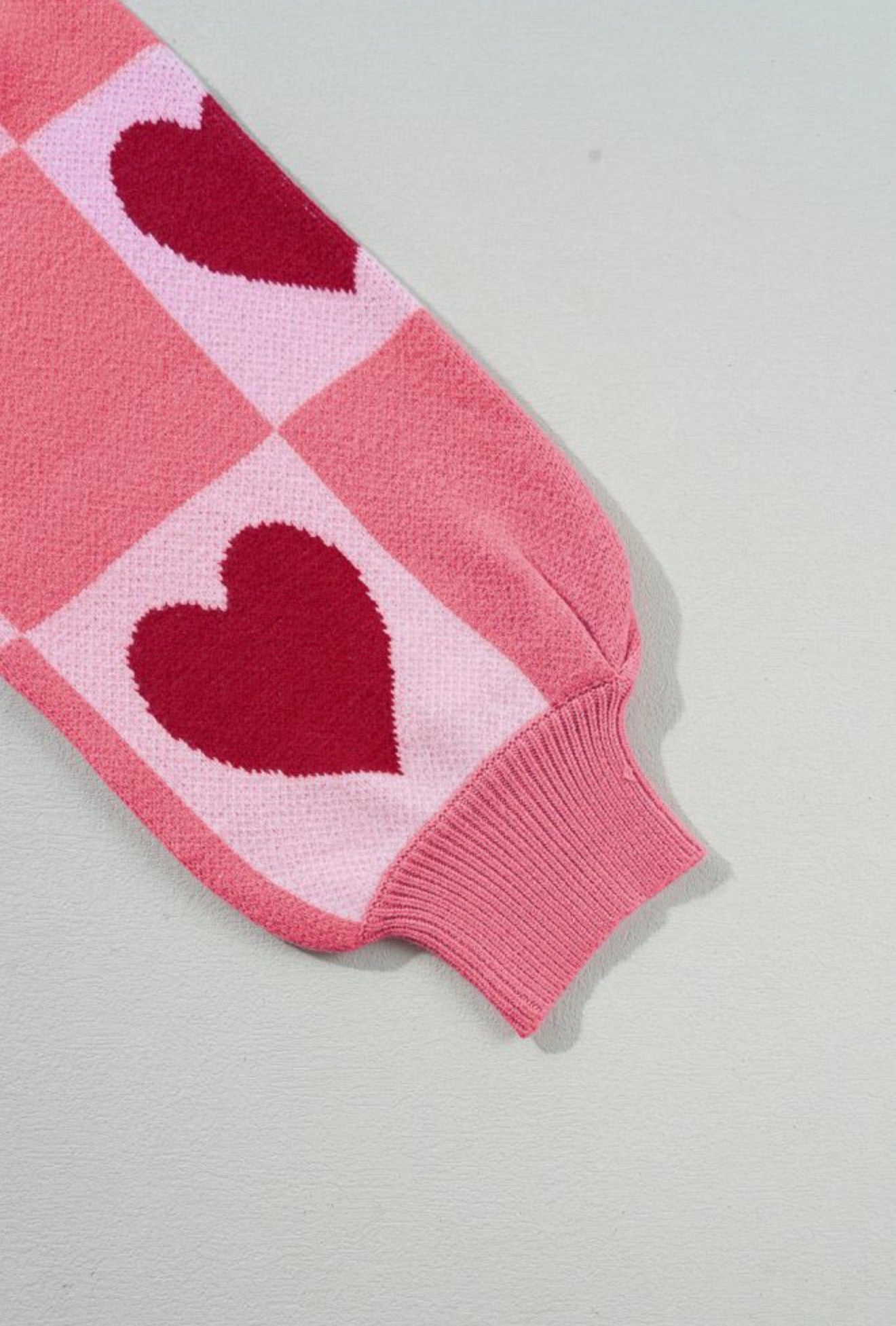 Fall head over heels for the Love You More Sweater— a feel-good sweater that’s as cozy as it is cute. Featuring an all-over pink check pattern with bold heart details, this sweater brings playful charm to your everyday wardrobe.
