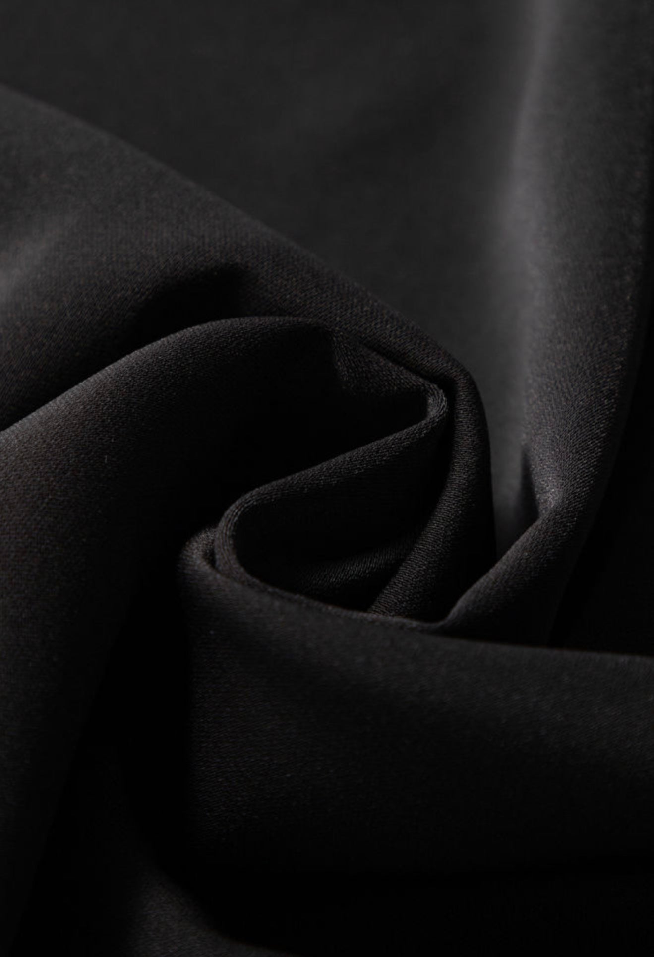 Fabric: 100% Polyester. Smooth, lightweight fabric with a soft drape that holds its shape beautifully. The lace sleeves are breathable and intricately detailed for a luxe, feminine finish.